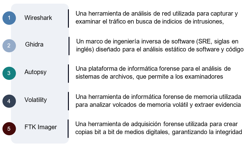 Competencia en el uso de herramientas y metodologías forenses reconocidas en la industria, mejorando la precisión, la eficiencia y la credibilidad en el análisis forense.