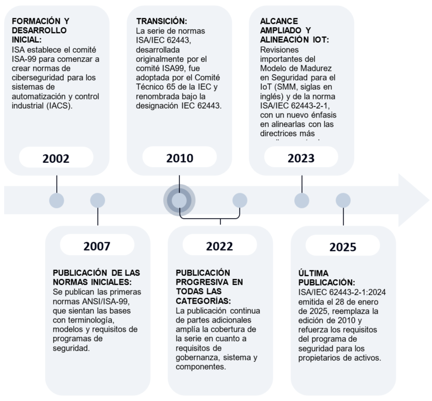 La serie ISA/IEC 62443 constituye el único conjunto de normas integral, con consenso global, dedicado a salvaguardar los sistemas de automatización y control industrial (IACS, siglas en inglés). Redactada conjuntamente por la Sociedad Internacional de Automatización (ISA, siglas en inglés) y la Comisión Electrotécnica Internacional (IEC, siglas en inglés), este portafolio de normas e informes técnicos establece un vocabulario unificado, un modelo de riesgos y un marco de control para la ciberseguridad industrial en diversos sectores, tales como la manufactura, la energía, la automatización de edificios, los dispositivos médicos y el transporte.